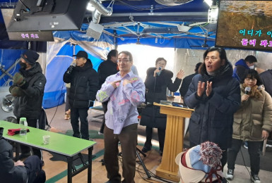 낮기온도 영하인 화요일 천막예배당은난로를 다 켜지 못하고(전기가 나가므로)두 개만 켜서 그런지 천막 안에서도 춥..
