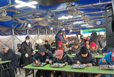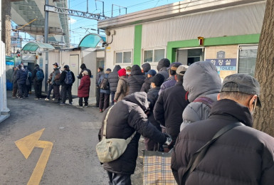 버스파업이 계속이지만,광야식탁을 찾는 노숙인들의 걸음은이 추위에도 줄지 않았습니다.광야에 설교오신지 올해로 18년 되셨다는..