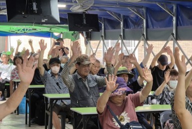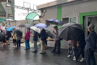 천막예배당이 망사텐트로 (3면이) 갈아 입었고,(철길쪽은 기차소리 때문에비닐텐트 이대로가 좋아요~)오늘은 잔잔한 바람까지 ..