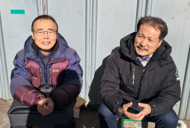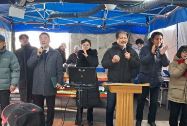 ■ 체감온도 20도의 최강추위 금요일 아침 천막예배당~!♥ 여주제자교회 이강일목사님 오셔서 설교하셨습니다.박종용집..