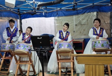 ■ 이슬비 내리며 어두컴컴한 화요일,한반도선교회에서 오셔서설교(길종규목사님)와 특송,후원(시루떡)과 식사기도(박중연목사님)..