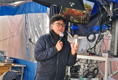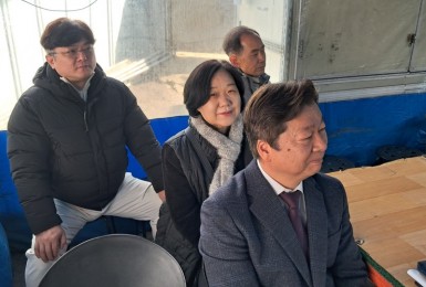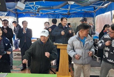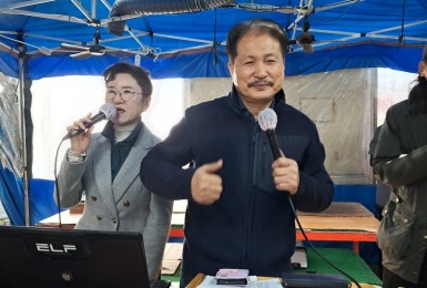 ■ 아침 영하 3도로 천막예배당에난로가 켜졌어요~설교로 성도님들을 늘 웃게 하시는새물결교회 이정철목사님 오셔서 설교하셨습니..