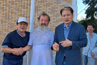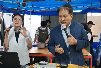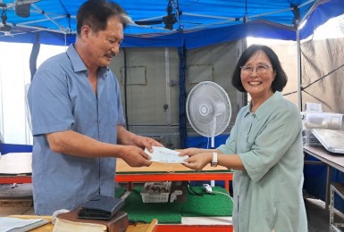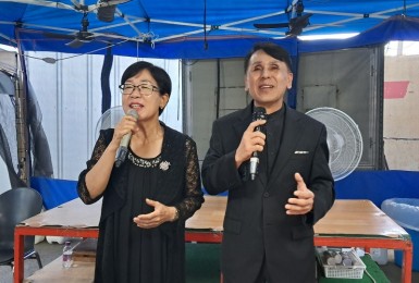천막예배자들 표현에,“잘 생기신” 이재상목사님(자애문교회) 오셔서설교와 후원을 해주셨습니다.이태종집사님과 김태형형..