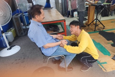 완도전도여행 후 하루도 쉰 적 없으시다는육호기목사님(85세) 오셔서 설교해주셨고,겨자씨에서 배식봉사를 오셨습니다.이태종집사..