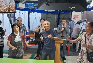 말복인 오늘(토), 천막예배당엔여느때처럼 예배자들로 꽉~찼습니다. 인천에서 정인성목사님 오셔서 설교해주셨습니다.비..