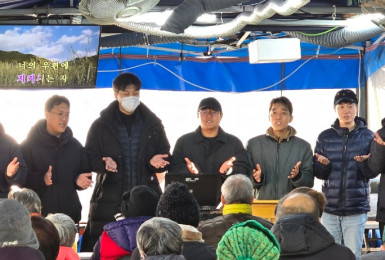 수요일에 천막예배에 설교 오셨던나경수목사님께서 오늘 또 은혜의 말씀들고 오셨습니다. 문병호집사님과 김경애집사님,김..