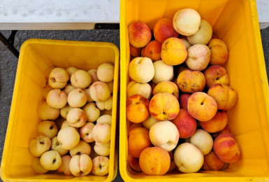 경기도남양주 해맑은교회 전송수목사님오셔서 말씀 전해주셨습니다.금융감독원에서 복숭아 50박스를 후원해주셨습니다.실로암교회 김..