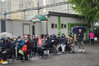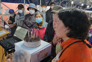 비가 부슬부슬 내리는 토요일,천막에 김정숙님께서 방문하셨어요.손숙희님께서 준비해주신 4월 생일자 선물(10명, 10만원)과..