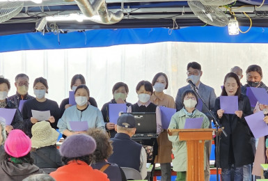 은제교회에서 심은수담임목사님,김남훈부목사님과 전도사님들, 성도님들모두 열일곱 분이 예배에 참여하시고,특송과 배식..