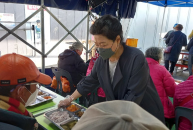 신순화님께서 눈이 아직 완쾌되지 않으신 것 같은데오늘도 배식 봉사하러 나오셨네요감사합니다~!♥ 잡곡밥과..