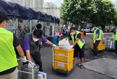 코리아레거시에서 도시락 290개를 후원해주셨습니다.감사합니다~!♥ 소고기얼갈이된장국과 간식 홍삼즙과 과자를곁들여 ..