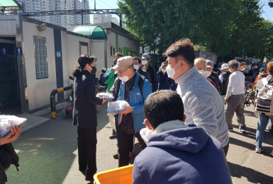 코로나19로 인해서 계속해서 실외에서 주먹밥, 국밥, 컵밥, 도시락을 나누어드리고 있습니다. 3월 9일(월)부터 시작..
