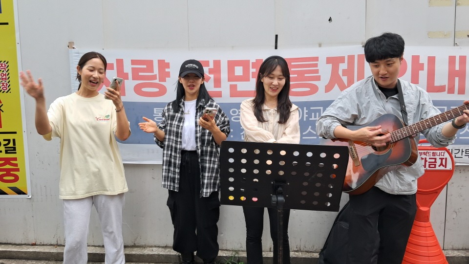 천막예배 특송과 배식봉사,