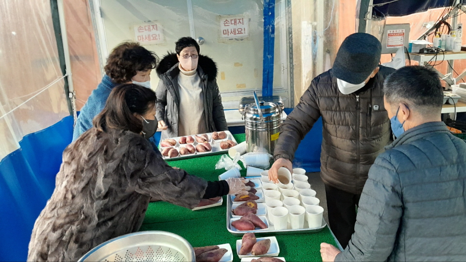 간식: 삶은 고구마, 떡국, 컵라면, 과자, 젤리커피(2023. 1..19.)