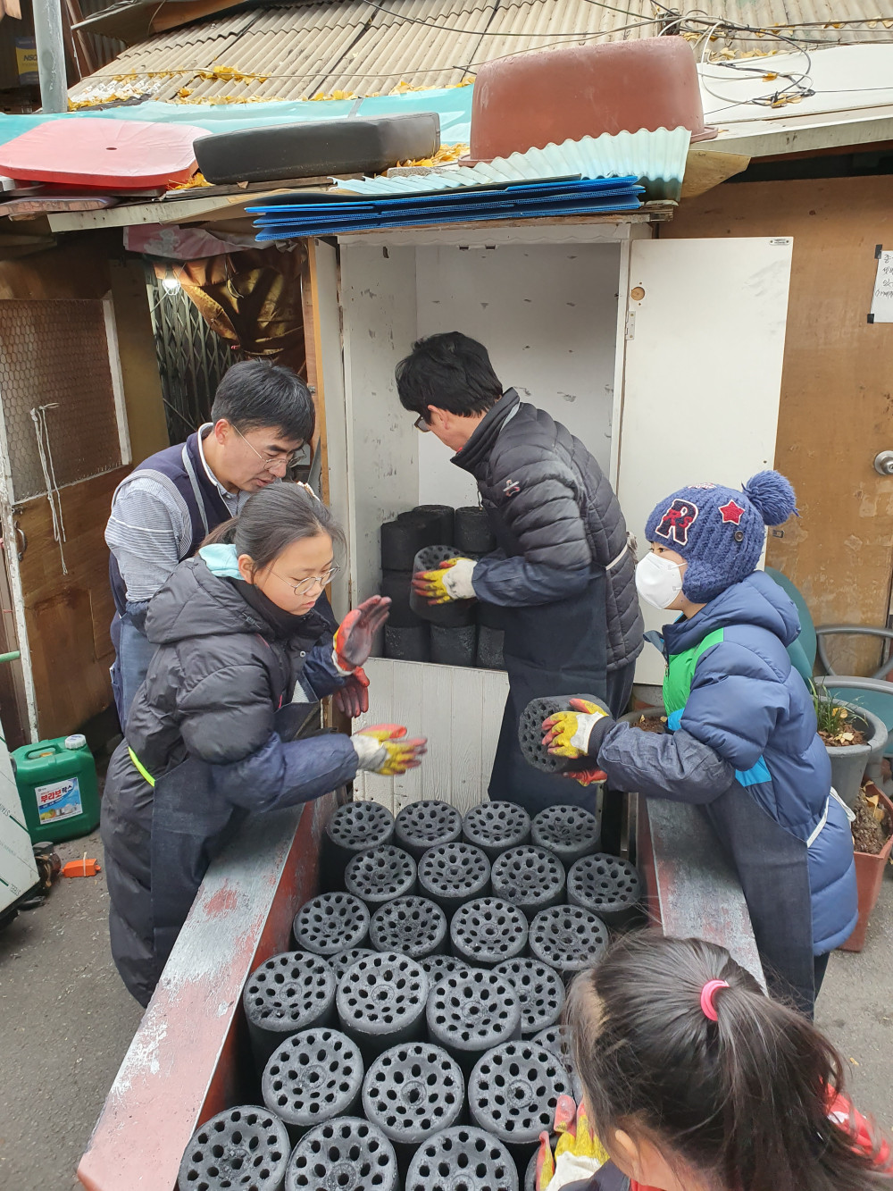 자녀들과 함께 이곳 영등포쪽방 대표 난방연료인 연탄을