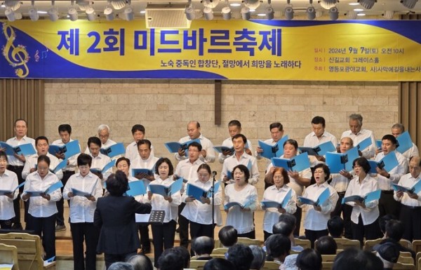 절망과 좌절 속에 쓰러져 있던 노숙인들이 예수 그리스도 안에서 부활의 소망을 얻어 하나님의 영광을 노래하는 제2회 미드바르콰이어 합창 발표회가 9월7일 신길교회에서 열렸다.미드바르콰이어는 광야와 같은 세상에서 살아가..