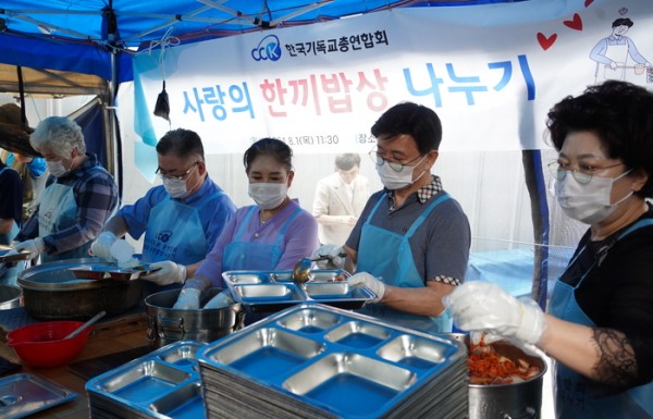 한국기독교총연합회(대표회장 정서영 목사)는 지난 31일부터 1일까지 양일간 ‘사랑의 한끼 밥상 나누기’로 노숙인, 독거·무의탁 어르신을 위한 급식 및 봉사활동을 진행했다. 정서영 대표회장을 비롯하여 김정환 사무총장..